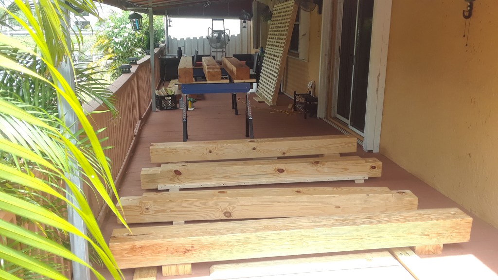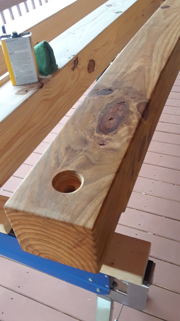 I picked up the 9 rough cut 8″x8″ posts; planed, cut, sanded and oiled which took roughly 3 months of afternoons and weekends to complete.