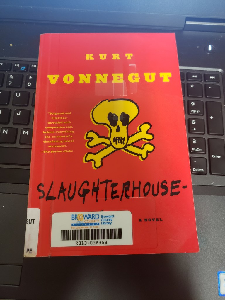 Wikipedia summarizes Slaughterhouse-Five as a science fiction infused anti-war novel by Kurt Vonnegut, first published in 1969. It follows the life and experiences of Billy Pilgrim, from his early years, to his time as an American soldier and chaplain’s assistant during World War II, to the post-war years, with Billy occasionally traveling through time. The text centers on Billy’s capture by the German Army and his survival of the Allied firebombing of Dresden as a prisoner of war, an experience which Vonnegut himself lived through as an American serviceman. The work has been called an example of “unmatched moral clarity” and “one of the most enduring antiwar novels of all time”.