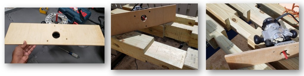 I used an offcut piece of plywood to make a jig for my router which could straddle the width of the shoulders to accept the beam. Using a deep straight bit, I cleaned out the cut lines and any left-over material on the beams.